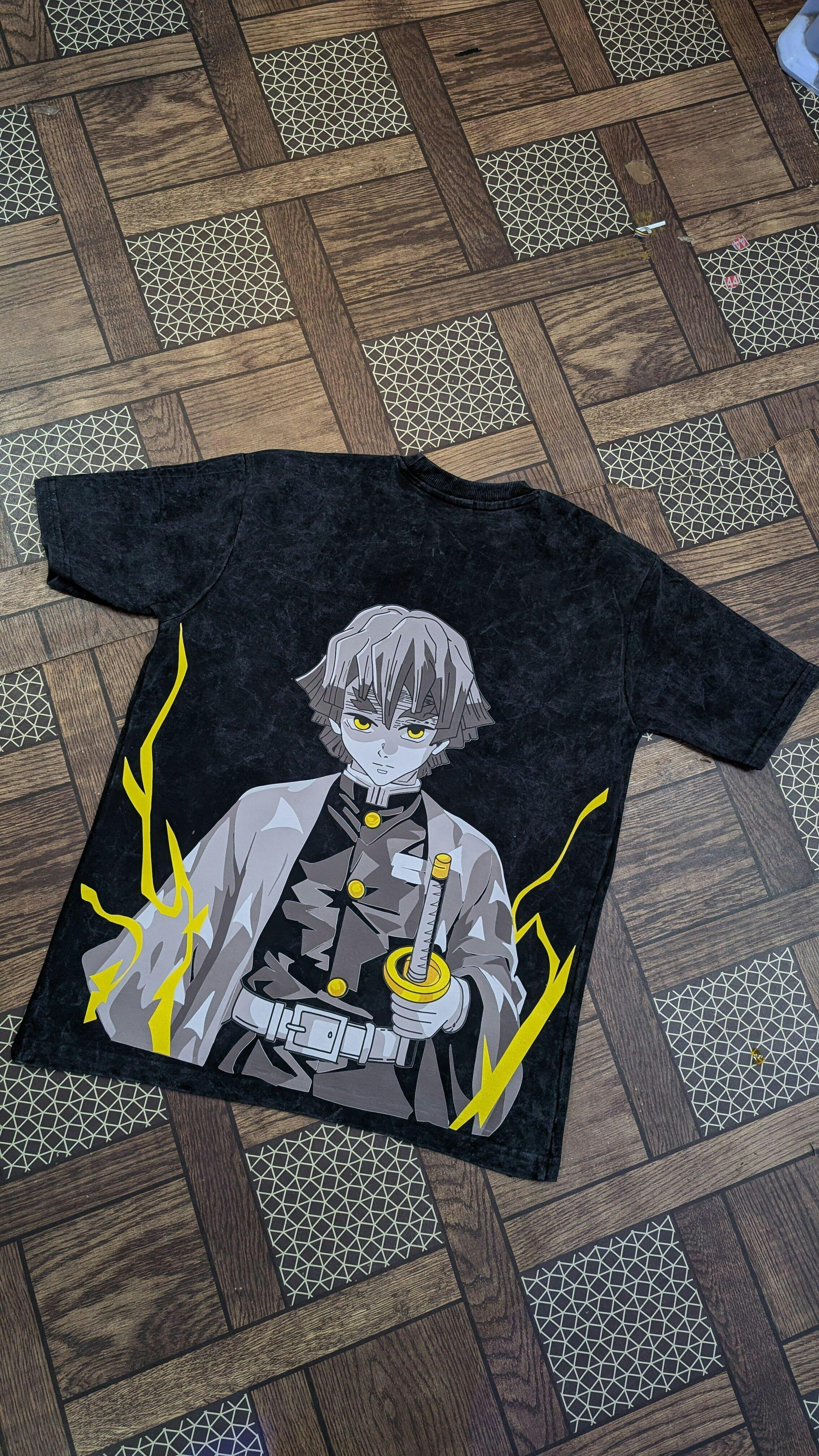 • Design: Zenitsu graphic with a trendy acid wash texture for a unique streetwear vibe.